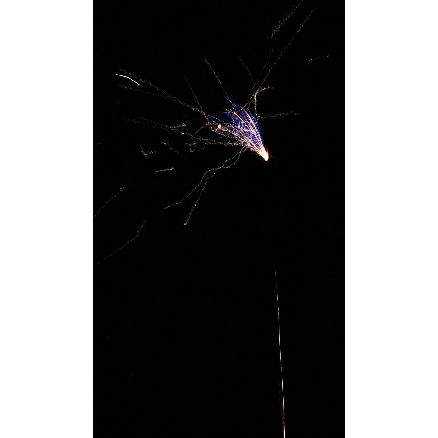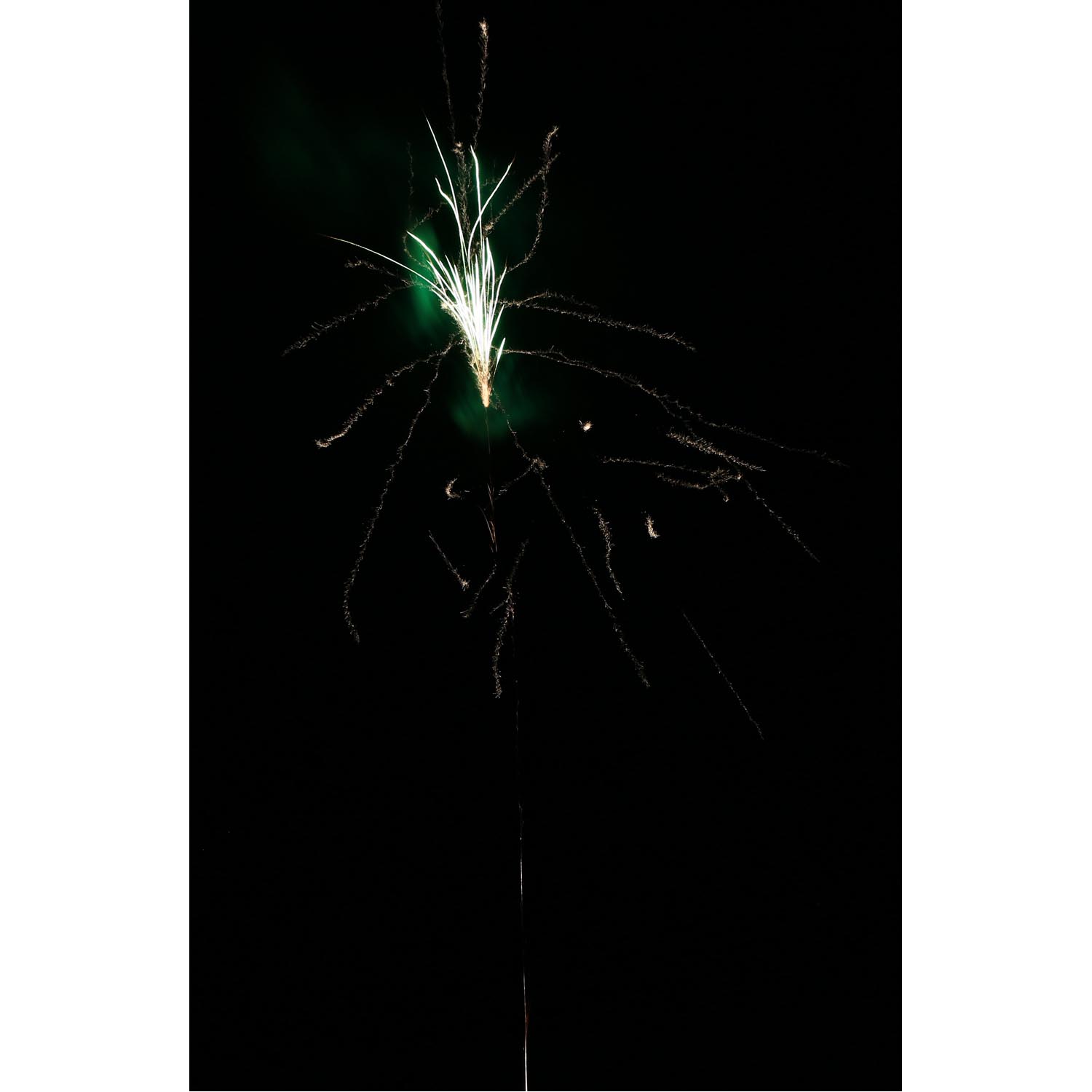 25 Schuss, nacheinander in wechselnder Abfolge mit silbernem Schweif aufsteigende Sterne mit anschließender Verwandlung zu roten, grünen und blauen Sternenbuketts mit unzähligen silbern umherschwirrenden Fisch-Effekten, endend in einem Finale mit einer Salve von 5 Schuss.