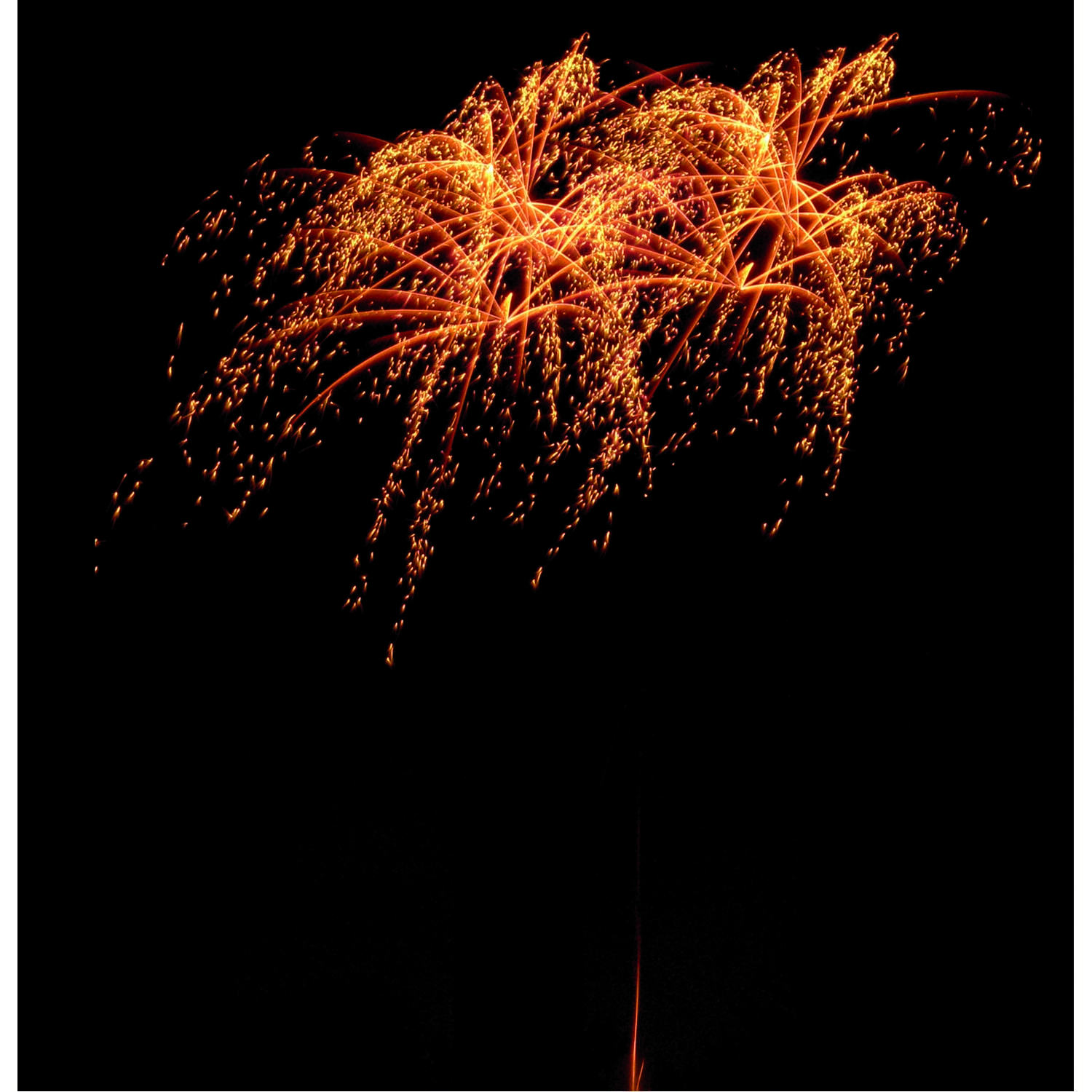 Profi-Batterie KAT F2, mit Design, gerader Abschuss. 30 Schuss Batterie mit langziehenden Goldflimmer Lanzen, endet mit einer kräftigen 5er-Salve als Finale.